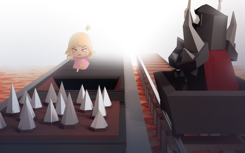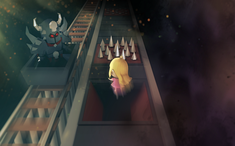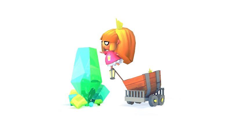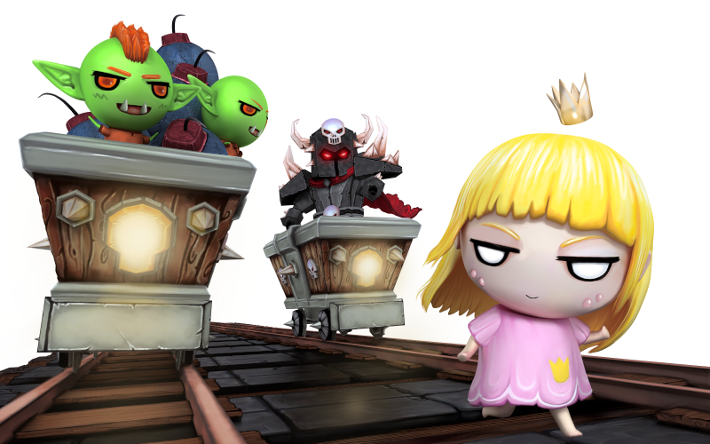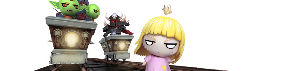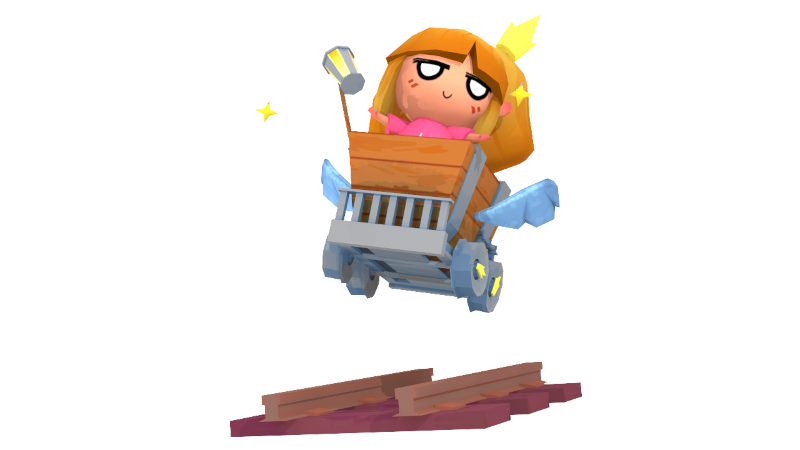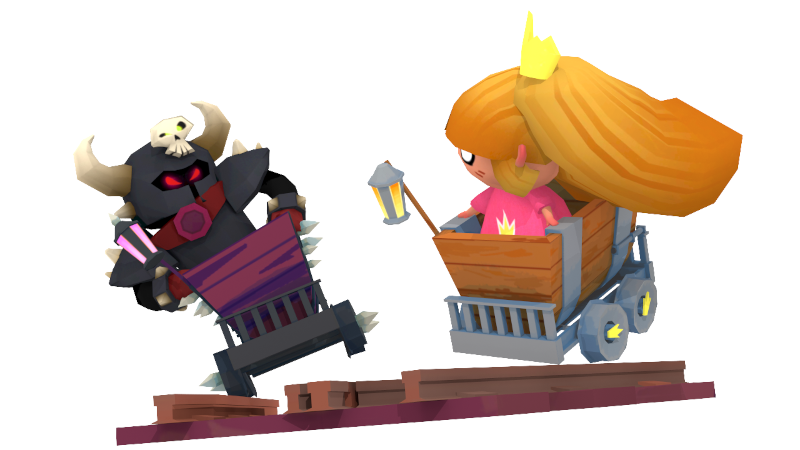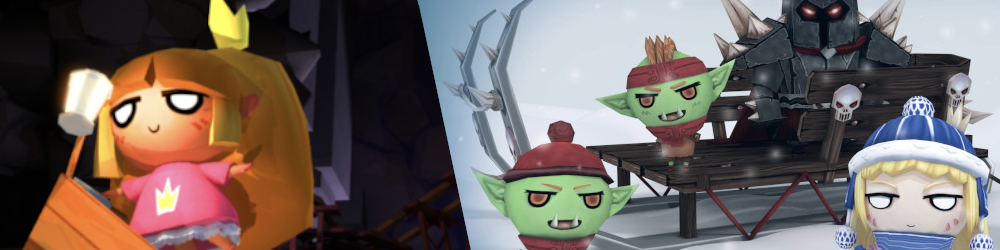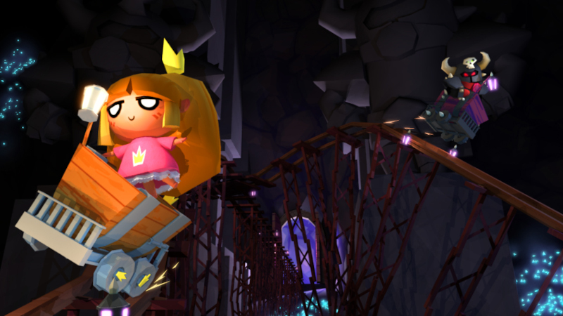 “Punzel: Mine the Gap” is a sabotage and planning-based minecart racing game in which both characters travel through the vast underground vault of the Overlord using railway switches to trap the other one in prolonged routes while activating shortcuts for themselves. This game has an especially elaborate level editor.