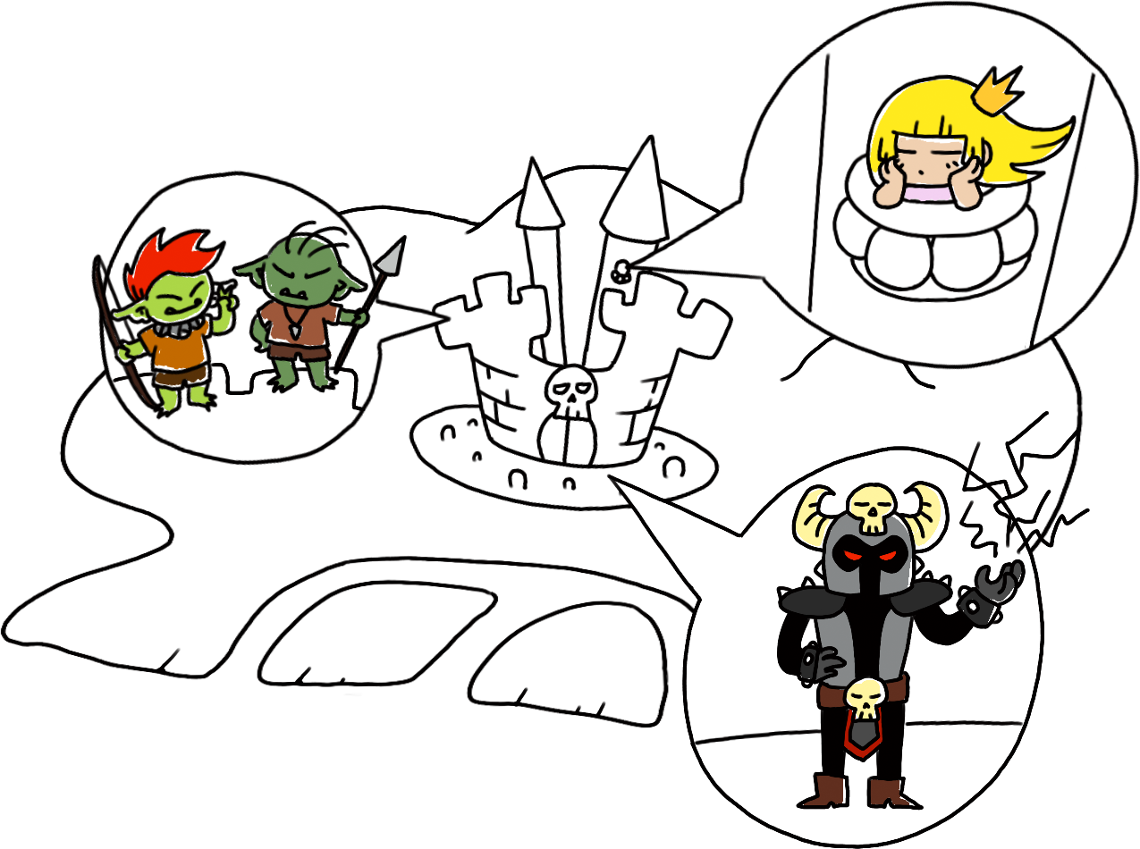 He reigns over the land of SKALL. His subjects are the Gobbos that live across this land. If all else fails, he will personally ensure the integrity of the castle by keeping it prince-free.